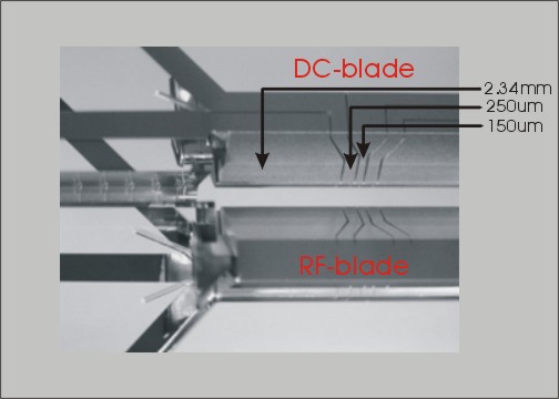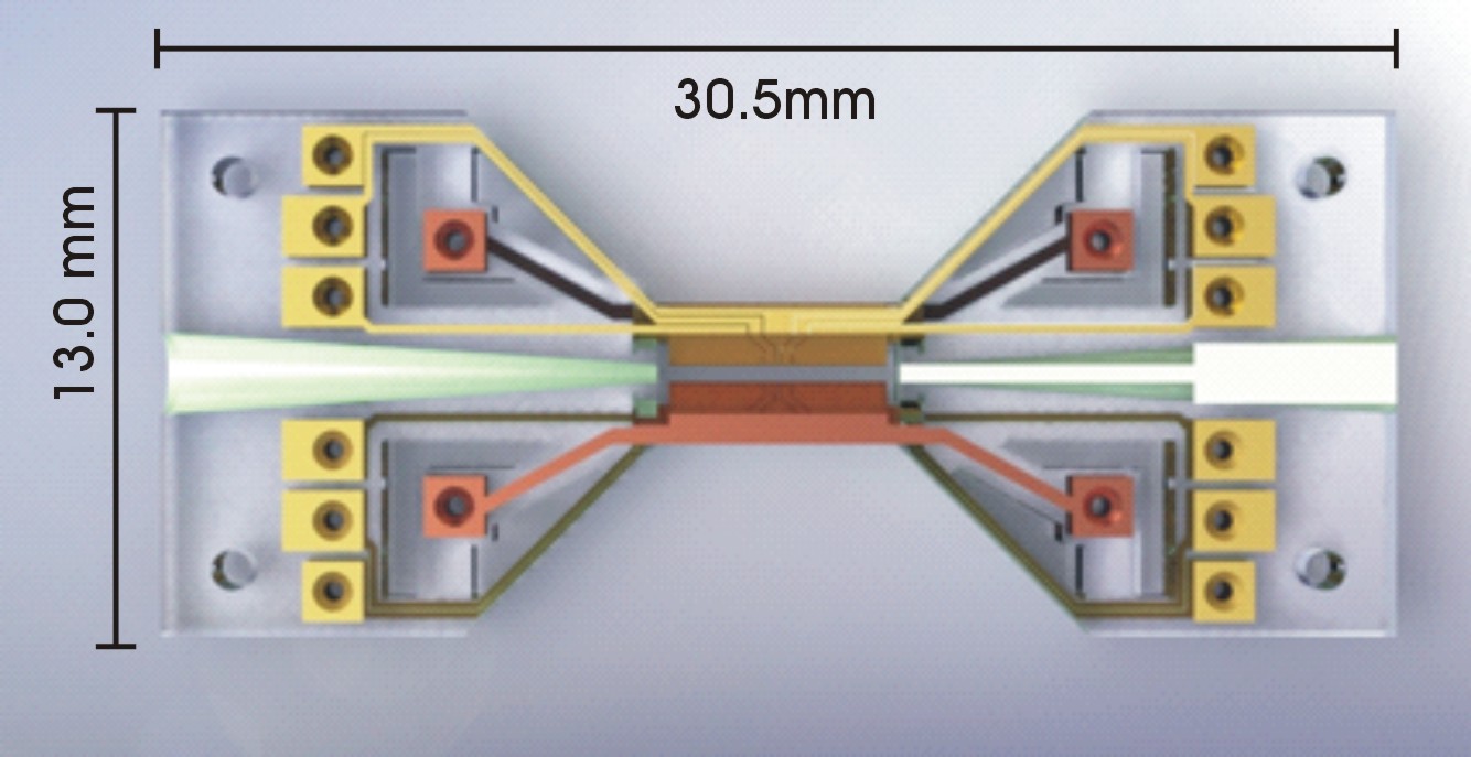 The GEN3-250 outside dimensions are 30.5 × 13 × 2 mm3, with the central four-blade section having dimensions 6 × 3.5 × 2 mm3. It is designed to operate at room temperature in an ultra-high vacuum.