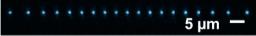 A Doppler-cooled linear crystal of 19 171Yb+ ions at ∼ 3 MHz radial confinement, with an inter-ion spacing of 4.2-micron for the central 13 ions, for which the uniformity was optimized with 7% variability. (Photo courtesy of the Pagano group @ Rice University)
